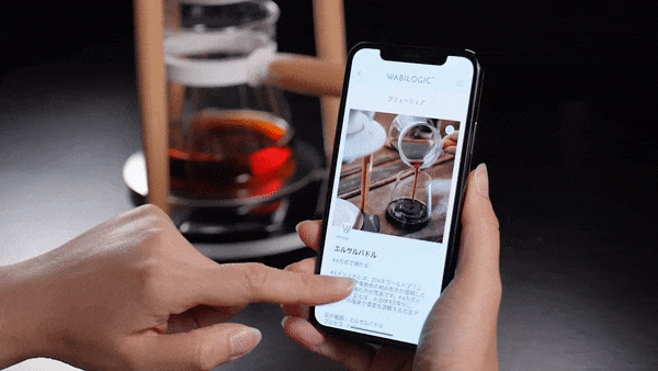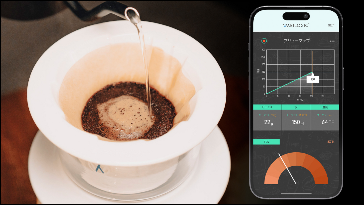 WABILOGIC™️独自のスマートTDSセンサー(濃度計測)が、ドリッピングの始めから終わりまでリアルタイムで濃度を測定。淹れ終わりと同時に平均値を表示することで、コーヒーの濃度を可視化し、安定した抽出を目指すサポートをします。