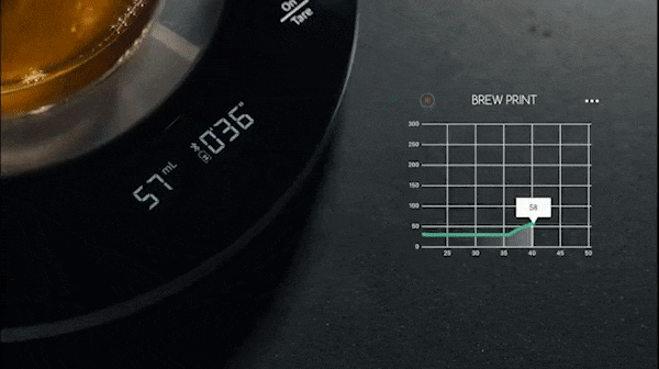 ブリューマップは、お湯を注ぐペースや蒸らすタイミングなどを湯量と時間軸のグラフにリアルタイムで表示・記録します。お湯を注ぎ始めれば自動的に記録を開始。自分のドリッピングを見返して研究したり、同じドリッピングを再現することも。