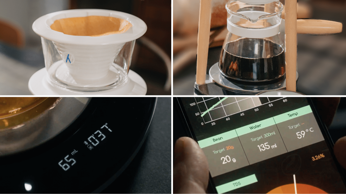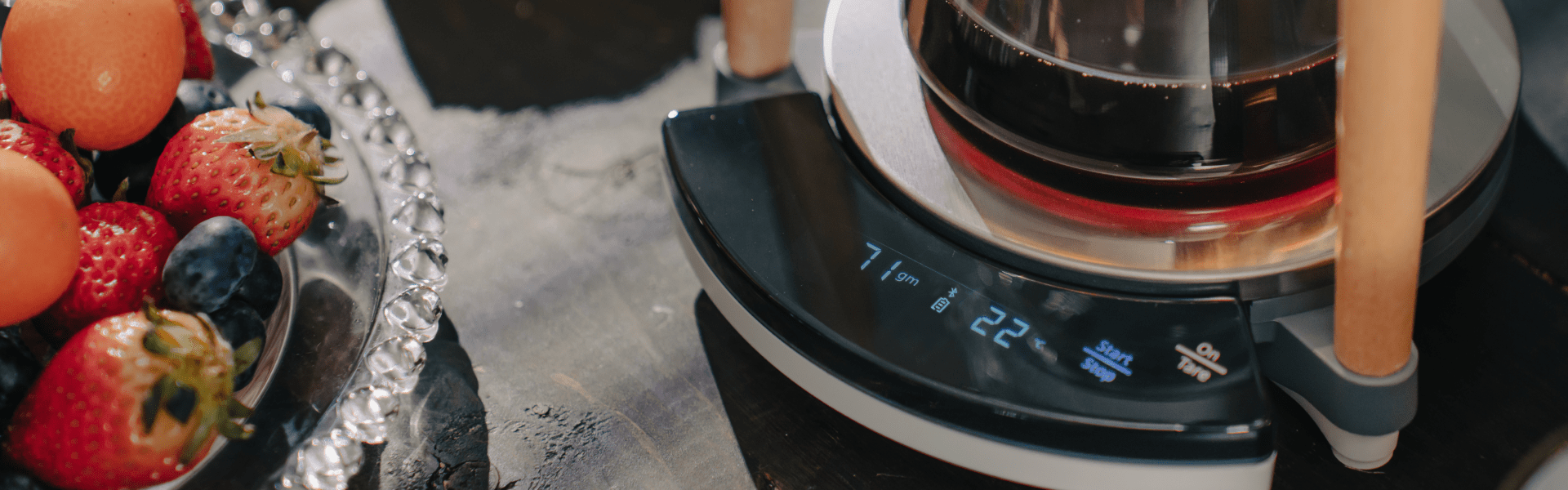 ドリッパー・カラフェ・タイマー・スケールが一体化。必要な道具が1回で揃うオールインワンデバイスです。重さや時間は本体のディスプレイでもアプリからでも確認できます。